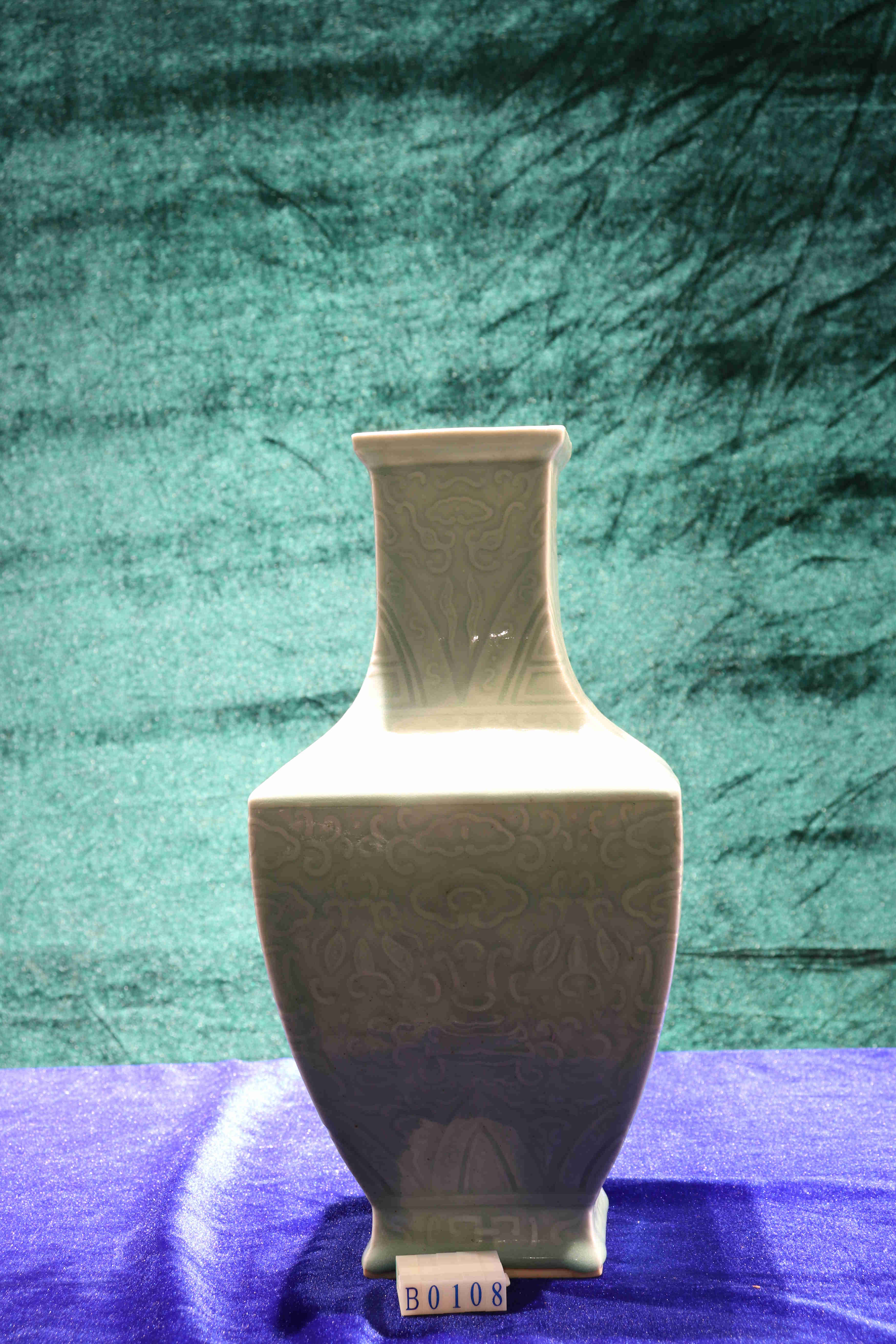 乾隆冬青釉暗刻方尊 寬17.4,高35.5