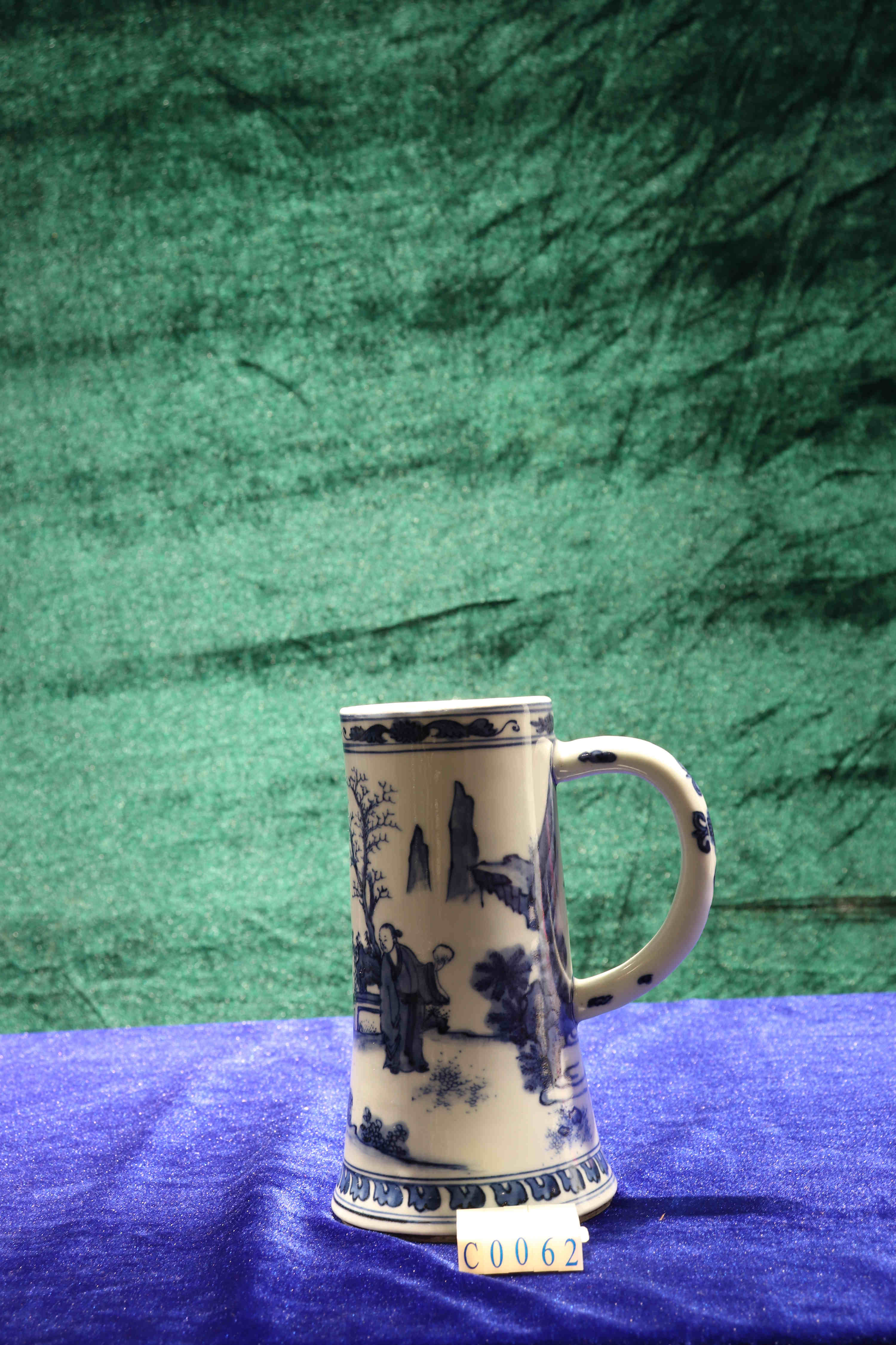 青花山水人物執(zhí)杯 寬13.8,高19.2