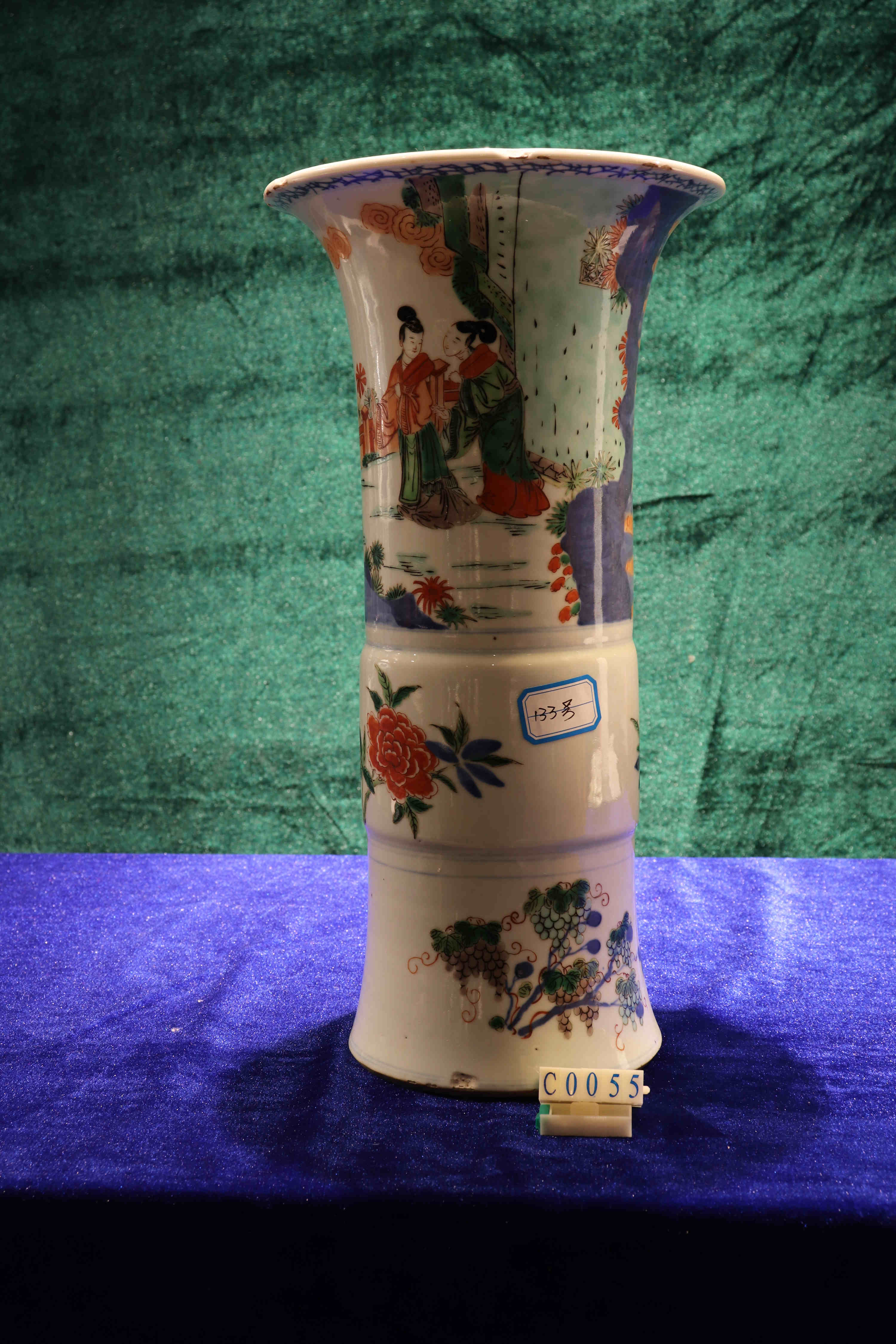 清光緒五彩人物紋花觚 寬20,高39.1